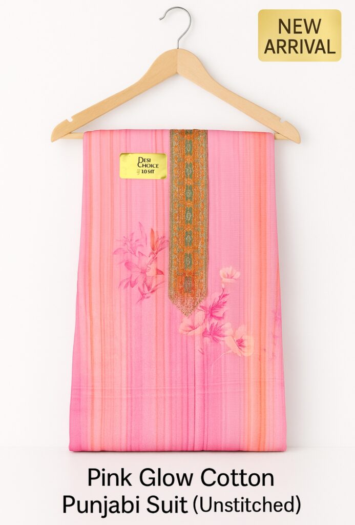 Pink blossoms (unstitched) suit,cheap price-Rs.550/-